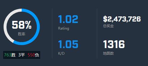 de_mirage地图:118胜84负1平 胜率高达58% 总回合数5309场