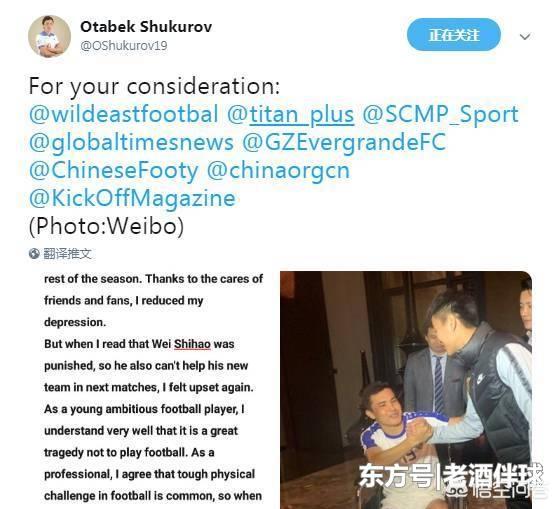 说实在话,一名被伤害致骨折的球员,在治疗中还能关心对其造成伤害者,并请求减轻对其的处罚,这事还真不多见。这从一个方面表明舒库罗夫的职业素养和心地善良,也从一个侧面反映了乌兹别克斯坦足球的全方位发展。从这点上来说,无论是韦世豪还是中超其他俱乐部,都是一个很好的学习榜样。足球运动不仅仅是竞技运动,也不仅仅是为了分出胜负,还有陶冶情操、提升道德的教化作用。