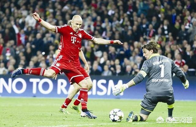 13年欧冠决赛,上演德甲国家德比。表现最为出色的两支球队多特蒙德和拜仁狭路相逢,当时的拜仁可谓,兵强马壮。后卫线有拉姆领先。中场有小猪施魏因施泰格,里贝里,锋线则有罗本,曼朱基齐。大黄蜂这边也不遑多让。后防有胡梅尔斯,中场京多安,格策,罗伊斯,锋线则是神锋莱万多夫斯基,两队在90分钟内战胜平手,补时阶段罗本接永贝里脚后跟传球,像鬼魅的幽灵一样从禁区弧顶突然杀入,灵巧的摆脱防守,穿过多特蒙德最后一道防线。直接面对门将,罗本左路盘带,却在再次启动的一瞬间,反向的轻巧推射,完成四两拨千斤的绝杀。