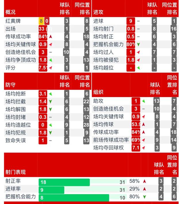 尤其是在进攻端,他已经成为克式红军由守转攻的重要棋子,也是球队在阵地战中位居高位的司令塔,场均制造1.6次射门机会的表现让人惊叹。